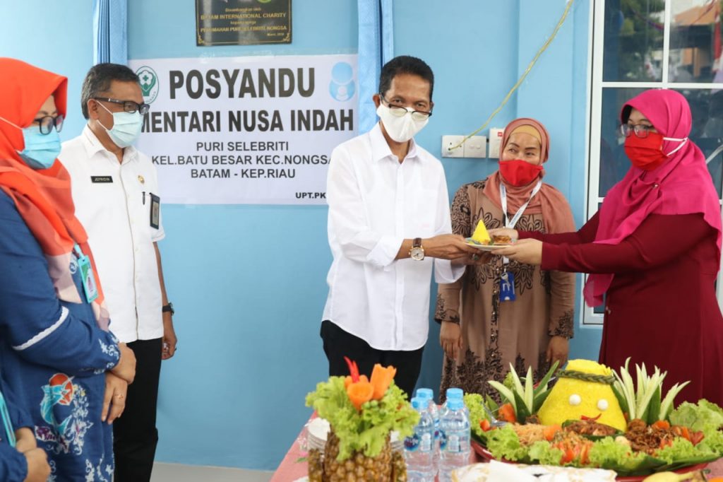Batam,Wahanaindonews.com – Wakil Wali Kota Batam, Amsakar Achmad meresmikan Posyandu Mentari Nusa Indah di Perumahan Puri Selebriti, Nongsa, Rabu (24/6). Posyandu ini dibangun dengan dana tanggung jawab sosial dari organisasi Batam International Charity (BIC).