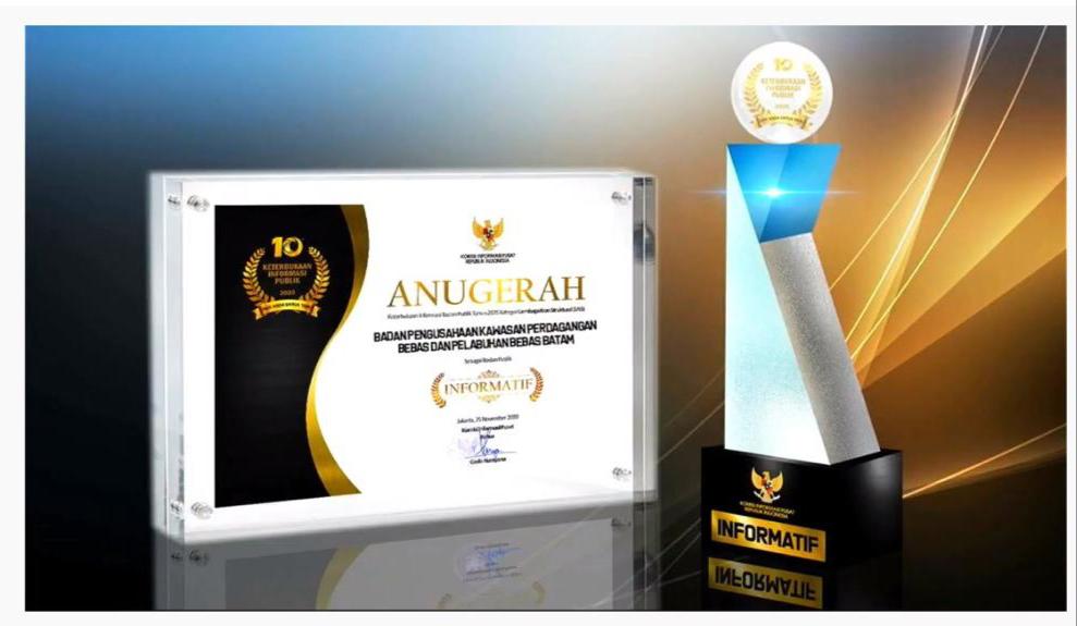Batam,Badan Pengusahaan Kawasan Perdagangan Bebas dan Pelabuhan Bebas Batam (BP Batam) meraih Anugerah Keterbukaan Informasi Badan Publik Tahun 2020 dengan kualifikasi Badan Publik Informatif untuk kategori Lembaga Pemerintah Non Struktural (LPNS) dari Komisi Informasi Pusat Republik Indonesia yang diumumkan secara virtual pada Rabu, (25/11/2020).