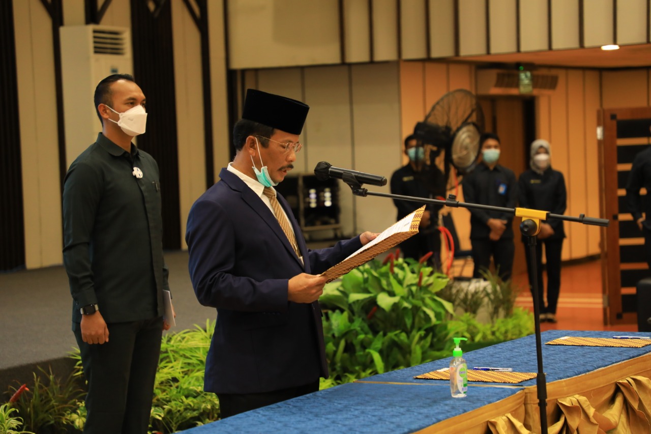 Kegiatan pelantikan berlangsung dengan memperhatikan protokol kesehatan guna mencegah penyebaran Covid-19.