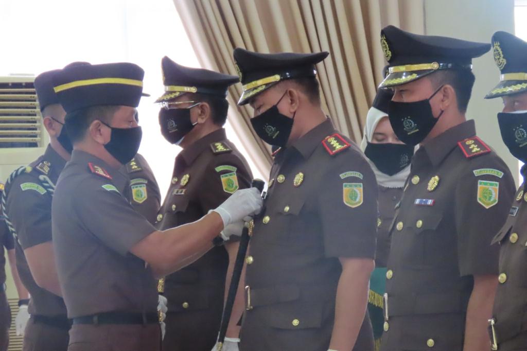 Batam – Kejati Kepri, Hari Setiono, melantik dan mengambil sumpah jabatan Wakajati Kepri dan 9 Pejabat Struktural Eselon III, di sasana Baharuddin Lopa Kantor Kejati Kepri, Tanjungpinang, Rabu, 24 Februari 2021.