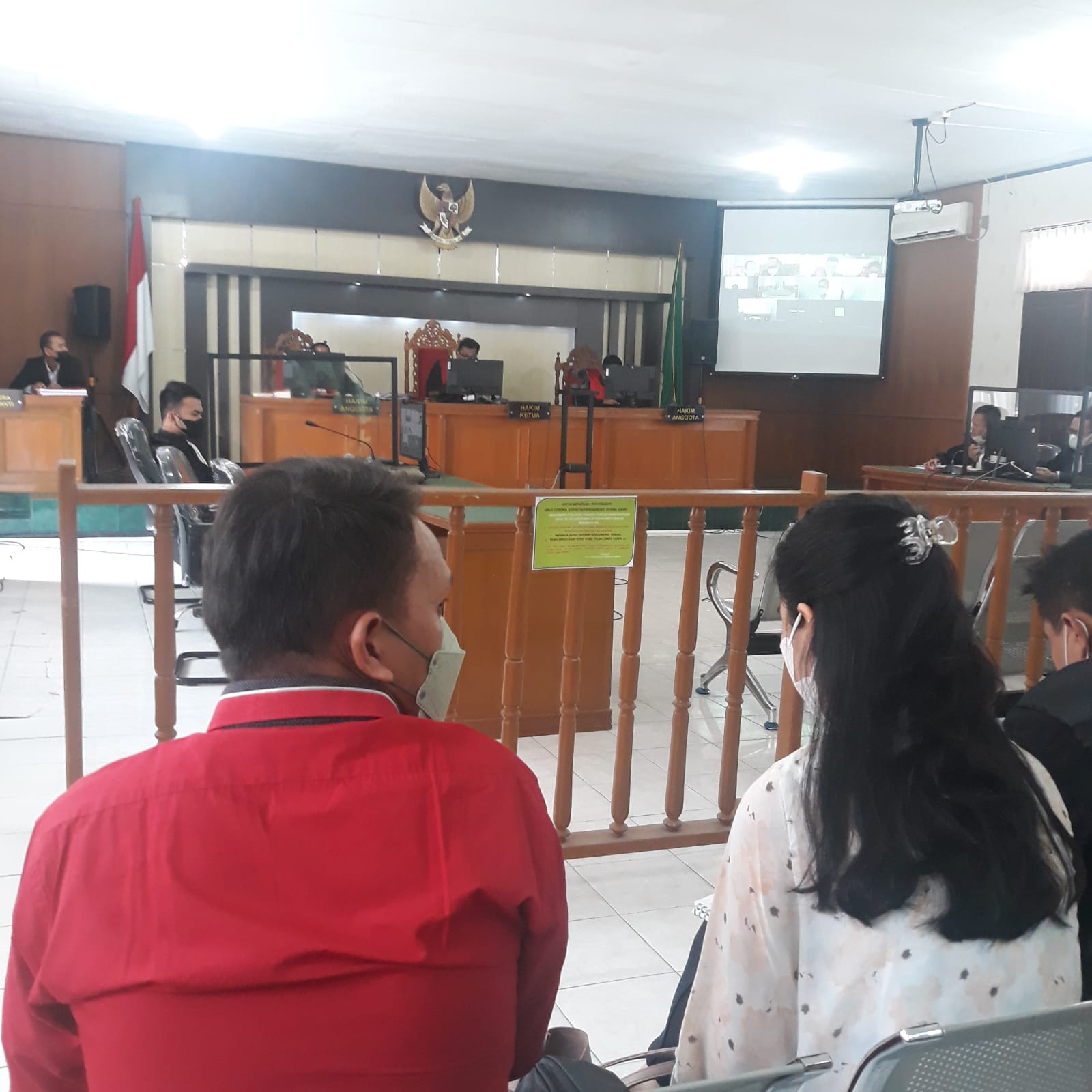 Keluarga Korban sedang menyaksikan Sidang Perkara Tindak Pidana Penipuan di PN Pekanbaru, Senin, 13 Desember 2021. (dok-juntak)