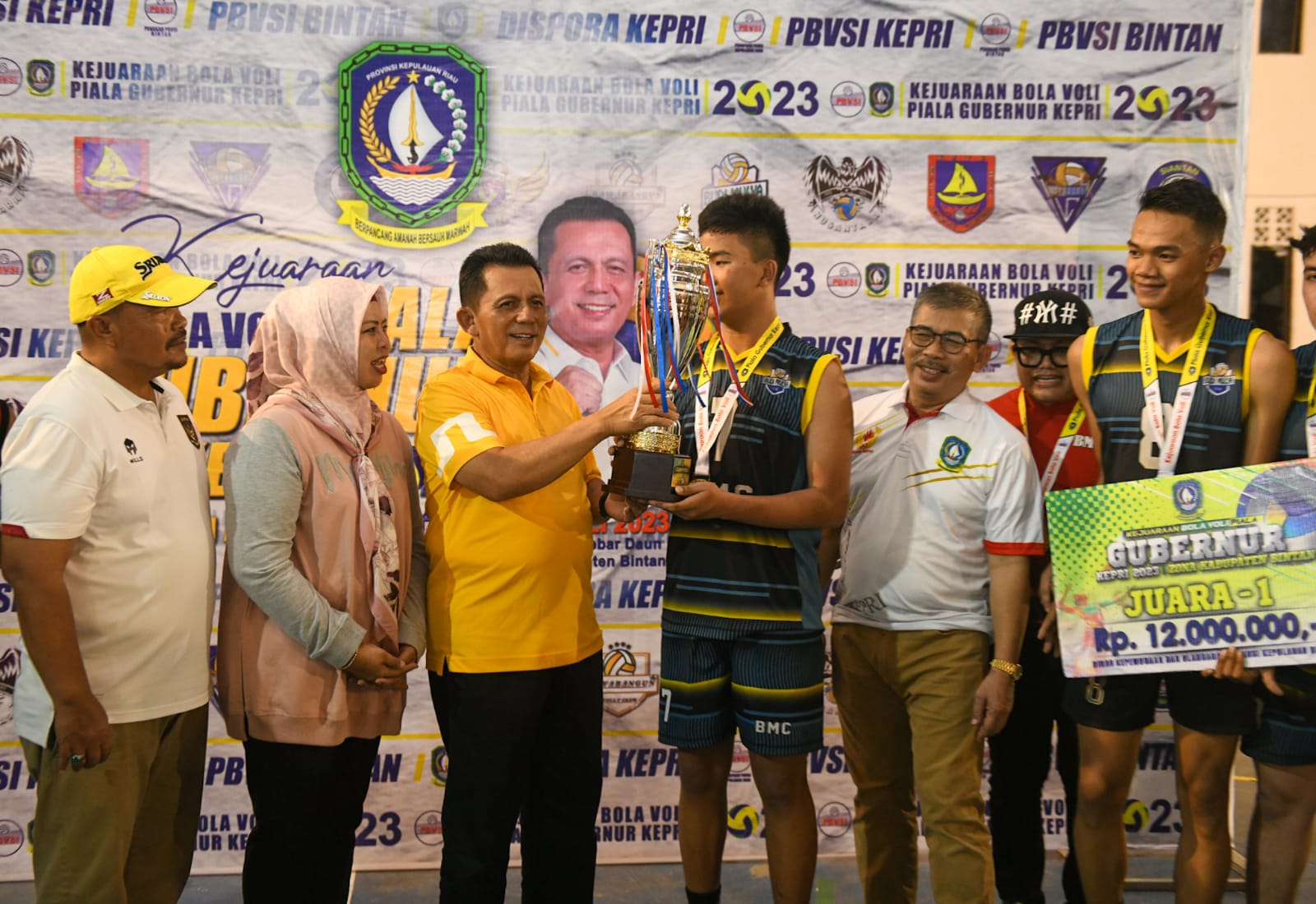 wahanaindonews.com, Tanjungpinang – Kejuaraan Bola Voli U23 Gubernur Cup Kepri Zona Kabupaten Bintan Tahun 2023 yang dilaksanakan di GOR Demang Lebar Daun Kijang, Bintan akhirnya selesai sesuai jadwal dan berjalan lancar. Gubernur Kepulauan Riau H. Ansar Ahmad beserta Ketua TP-PKK Provinsi Kepri Hj. Dewi Kumalasari Ansar menyaksikan langsung jalannya Final penentuan Juara 1 dan 2 sekaligus Menutup Kejuaraan pada Rabu, 24 mei 2023 malam.