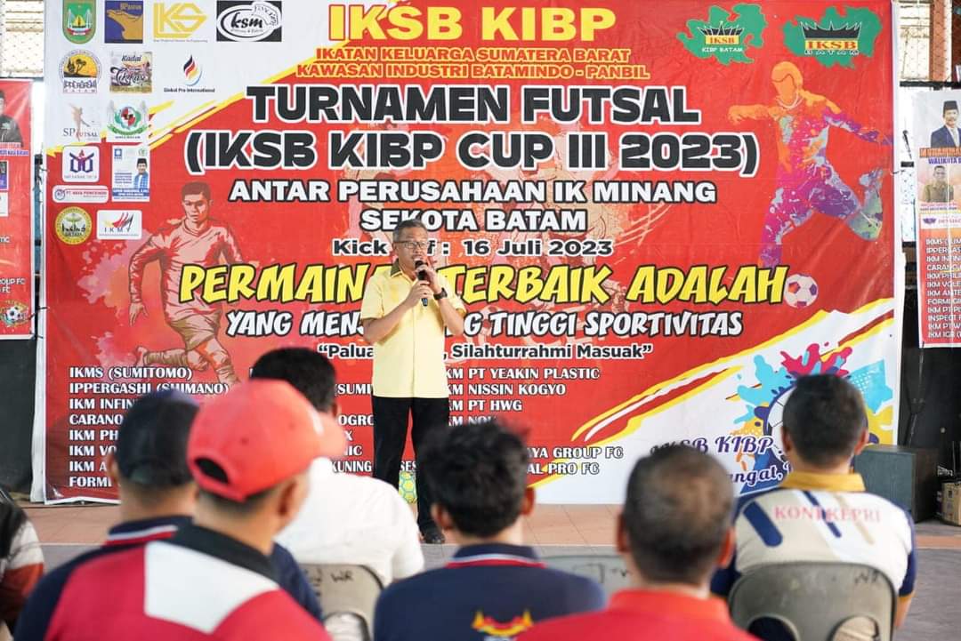 wahanaindonews.com, Batam – Sekretaris Daerah Kota Batam, Jefridin, M.Pd. menutup secara resmi turnamen futsal Ikatan Keluarga Besar Sumatera Barat (IKSB) Kawasan Industri Batamindo-Panbil (KIBP) III 2023 antar Perusahaan IK Minang, Minggu 20 Agustus 2023.