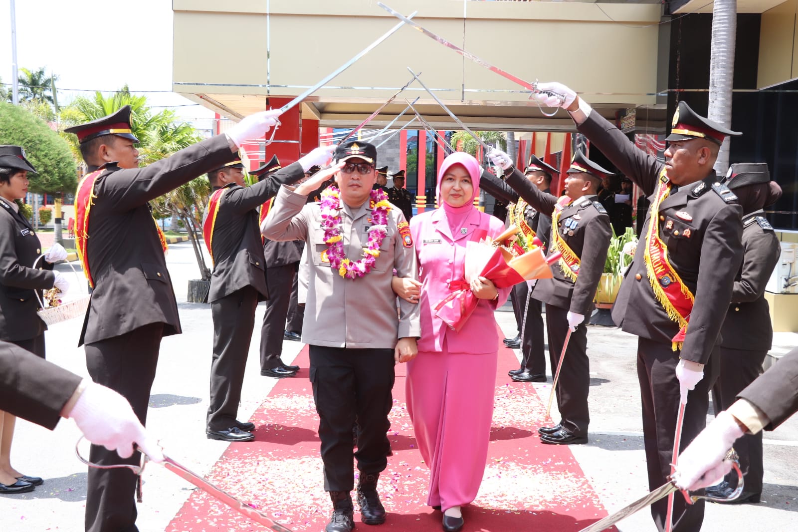 wahanaindonews.com, Karimun -Pelaksanaan tradisi Welcome And Farewell Parade diawali dengan penyambutan Kapolres Karimun AKBP Fadli Agus, S.I.K, M.H., M.M. yang baru dengan pengalungan bunga kemudian dilanjutkan dengan jajaran hormat dengan disambut prosesi pedang pora Rabu 25 Oktober 2023.