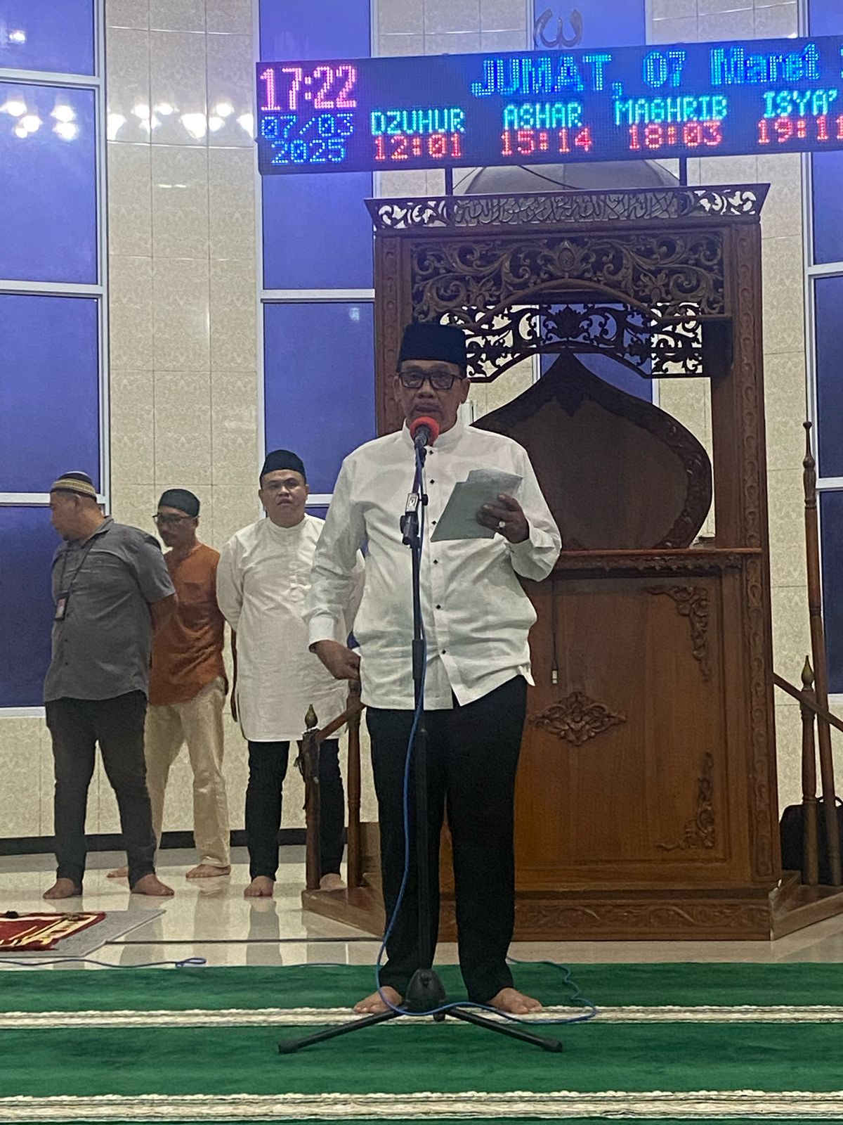 Iman sekaligus ketua DPD Partai Gerindra Provinsi Kepri itu datang menggunakan baju muslim dipadu dengan kain sarung serba putih.