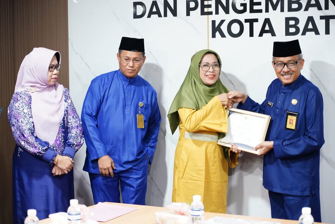 Penyerahan SK pensiun berlangsung di ruang rapat Kantor Badan Kepegawaian dan Pengembangan Sumber Daya Manusia (BKPSDM) Kota Batam, Rabu, 30 April 2025.